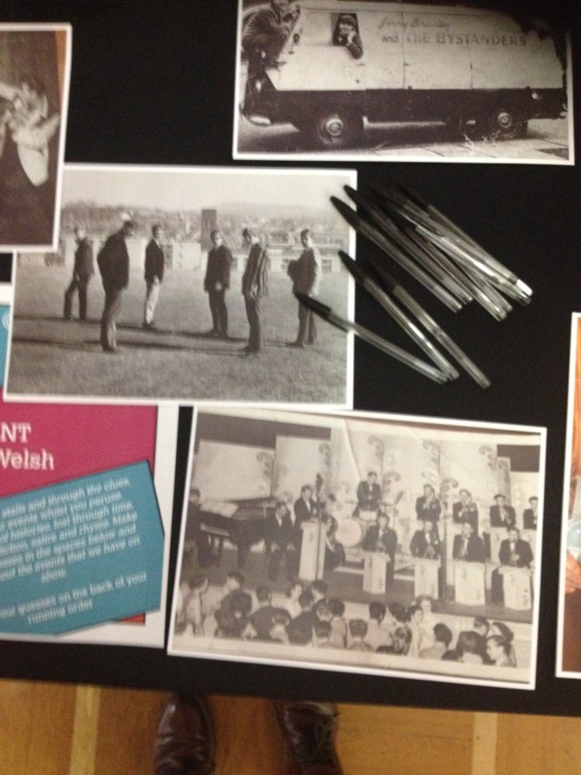 However, this exhibition intends to celebrate an alternative cultural history, a more positive narrative of Merthyr: popular music making and engagement between the years 1955-1975. This period was chosen because it is between these times that rock ‘n’ roll began to take over from big bands and when live music opportunities noticeably abounded in the town. It was also deemed important to capture the memories generated between this time period because they will eventually disappear. I have lost count of the number of times that I have been told a now deceased member of the community could have provided invaluable information, but is no longer with us. This ensures that the present opportunity is not missed to link together what Jan Assmann describes as communicative and cultural memory, internally remembered oral histories that are linked to identity and “external objects as carriers of history”. As Assman states, our memories exist “only in constant interaction, not only with other human memories, but also with “things”, outward symbols” that “carry memories we have invested in them” (111). This exhibition and the work we done as part of the Being Human Festival in November are hopefully examples of initiatives that facilitate this union.